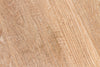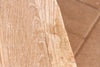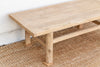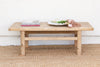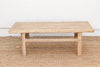 Reconstructed from sturdy reclaimed wood, this unique coffee table carries the rich character of its past, with every grain, knot, and imperfection telling its own unique story. The simple yet impactful "waterfall" or "Parsons" style construction, where the tabletop seamlessly flows into the legs, is a testament to its modern, minimalist design. The wood has a beautiful, natural, light finish, showcasing its stunning grain and rustic texture. This patina, along with its clean lines and robust form, gives the piece a serene, grounded presence that feels both ancient and utterly modern.
