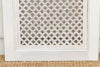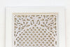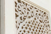 Crafted from solid reclaimed teak wood, this door panel has a beautiful powder white painted finish. This finish gives it a light and airy feel, while also preserving its history and adding a touch of rustic charm. Sized at 32” wide, this carved door would be wonderful statement piece as an interior door or mount it as a unique piece of art in a living room, dining room, or hallway.
