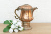 This is a quintessential symbol of Kashmiri hospitality: a traditional copper Samovar used for brewing Kahwa (spiced green tea). The design is ingenious—the central vertical tube (visible inside the rim) was filled with live coals to keep the tea in the surrounding chamber piping hot. This piece is distinguished by its elaborate sculptural details, including a stylized dragon or serpent handle and a spout often shaped like a bird's head. The vessel rests on a pierced, lattice-work base which originally allowed airflow to the coals. It is a masterpiece of functional engineering and artistic metalwork.