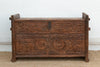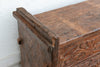 Hailing from the mountainous Swat Valley region, this sturdy chest was traditionally used as a "dowry box" to store valuable textiles, jewelry, and family heirlooms. Crafted from dense Himalayan Cedar it features the region's signature deep-relief carving. The front panel is dominated by two large solar rosettes (symbols of life and protection) flanked by stylized floral vine motifs. This long carved chest retains its original vertical side rails—which historically helped secure the chest with ropes during transport—and a simple iron hasp for the top-opening lid. Its warm, honey-brown patina tells the story of decades of use.