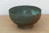This antique copper vessel carries the look of a buried treasure. A footed copper bowl defined by its heavy, natural verdigris patina—the beautiful turquoise-green oxidation that forms on copper over decades of exposure to the elements. Beneath the weathered surface, you can see a hand-engraved band of primitive geometric motifs, suggesting a village or tribal origin rather than a royal workshop. The footed base gives it a lovely, elevated silhouette, making it feel more significant than a standard flat-bottomed bowl. It is a piece of "Wabi Sabi" art in its purest form.