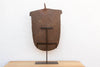 If you are looking for a statement piece that defines a room, this is it. Standing nearly four feet tall and weighing a staggering 38 pounds, this antique iron currency blade is closer to architecture than decor. The surface is incredible—a landscape of rough-hewn texture, forging marks, and a deep, varied oxidation that tells the story of its creation. It commands attention not just through its size, but through the sheer density of the material. Mounted on a custom heavy-duty metal stand, it floats safely and securely, allowing the light to catch the rich, dark patina of the metal.