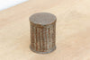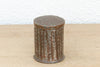 This petite cylindrical box is defined by its textured surface, featuring vertical columns of hand-hammered stylized motifs. Crafted from copper and originally coated in tin (Kalai), the finish has worn down to create a lovely two-tone patina of silver and warm bronze. In a traditional Indian household, a small, tight-lidded vessel like this would have safeguarded precious items—perhaps saffron strands, medicinal herbs, or gold jewelry. Its robust construction and snug lid kept contents safe from moisture and air.