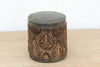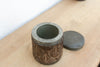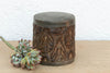 A sophisticated example of a traditional Chinese tea canister, designed to preserve the delicate flavor and aroma of loose-leaf tea. The vessel features a dark, high-relief body with a dense, tactile pattern of stylized botanical motifs, contrasting beautifully with the smooth, silver-toned metal (likely pewter or tinned lead) of the lid and base. The craftsmanship suggests it was made for a scholar's studio or a merchant's personal collection. The heavy, tight-fitting lid is a functional necessity, creating an air-tight seal that was crucial for storing aged Pu-erh or Oolong teas in humid climates.