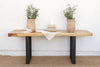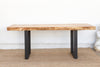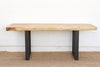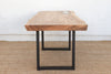 This exceptional dining table is a study in dramatic contrast, a piece that finds harmony in opposing forces. Measuring a substantial 83 inches long, this table features a magnificent thick wood slab with a natural, live edge that retains the organic curvature of the tree. This earthy, raw top is artfully mounted on custom iron legs with sharp, industrial lines, creating a striking fusion of rustic and contemporary design.