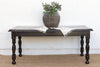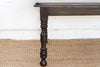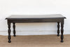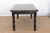 This Anglo dining table is truly a rare and magnificent find, a testament to the elegant craftsmanship of the late 19th century. Crafted using an assortment of exotic woods, this antique dining table wears a beautifully fluted carved top and stands on four powerful reeded legs, which are meticulously decorated with intricate floral and foliate designs. The entire structure is finished in a sleek and elegant two-tone color featuring rich brown and ebony hues, a stunning contrast that highlights the exceptional turning and carving. Originally serving as a formal dining table in a high-status colonial home, its grand scale, measuring 72 inches long, makes it perfect for anchoring a modern dining room, blending seamlessly with both traditional and contemporary interiors.