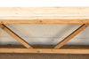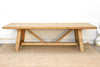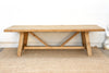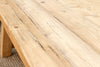 Prepare to host grand gatherings and create lasting memories around this magnificent French Basque Style dining table, a piece that beautifully blends rustic charm with monumental scale. Measuring an impressive 108 inches long, 42 inches wide, and standing at a sturdy 30 inches high, this imposing table offers a powerful and inviting presence, comfortably seating 10 to 12 guests. Inspired by the classic tavern tables of the French Basque region, this piece is expertly reconstructed from reclaimed wood, giving it a rich history and an eco-conscious soul. The sturdy foundation is a distinctive sawhorse stretcher base, a robust and rustic design that ensures stability and perfectly complements the expansive tabletop. The light brown wax finish proudly displays the wood's inherent beauty, showcasing the substantial 3-inch thick top, unique grain, knots, and natural imperfections of the timber.