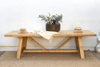 This reclaimed wood trestle table is the ultimate anchor for your dining space, perfect for Farmhouse, Coastal, or Transitional interiors, adding monumental presence, warmth, and historical depth.