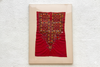 The vibrant, powerful color and reflective mirror-work make this textile a high-impact, luxurious focal point. It is perfectly suited for Bohemian Maximalist, Anglo-Indian Colonial Chic, or Global Eclectic interiors. The vertical 26" x 35" size is ideal for adding a concentrated burst of color and texture to a smaller space, such as above a nightstand or within a gallery wall. The crimson red and metallic mirror flashes create a jewel-like effect. The modern plexiglass display and professional mounting present the antique textile in a clean, contemporary manner, allowing the intricate three-dimensional texture of the embroidery to be fully appreciated as artistic elements. This technique perfectly bridges ancient craft with modern gallery standards.