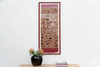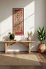 The vibrant color, extreme vertical format, and rich cultural depth make this textile a powerful statement piece. It is perfectly suited for Southwestern Modern, Global Eclectic, or Mid-Century Modern interiors. The 52-inch height is designed to draw the eye up, making it the perfect accent for flanking doorways, filling a narrow wall, or hanging above a tall headboard. The bold colors command attention. The textile is professionally framed in a custom red frame, a choice that amplifies the oxidized crimson tones within the textile, creating a cohesive, high-impact display.