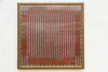 The vibrant color palette, intricate weaving, and strong square format make this textile an exceptional focal point. It is perfectly suited for Maximalist, Traditional, or Anglo-Indian Colonial Chic interiors, adding warmth and unparalleled texture. Hang the 41-inch square panel above a fireplace or between windows. The deep reds and golds create a jewel-tone accent that grounds a room, pairing beautifully with dark wood furniture, leather, or velvet upholstery.