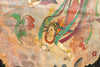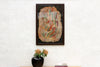 This striking framed panel is a magnificent vintage artwork executed in the challenging and specialized Fresco Style, utilizing pigment painted directly onto a plaster or thick, textured compound. This technique intentionally evokes the grand scale and antiquity of ancient wall paintings from regions like China's Silk Road. The artwork is presented as an organic fragment, deliberately sculpted to show raw, torn, and irregular edges, emphasizing the material's fragility and age. The painting itself features vibrant botanical and aquatic motifs (stylized lotus flowers), creating a flowing, ethereal composition where the saturated colors contrast beautifully against the distressed, earthy background.