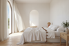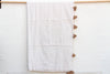 This piece is a study in texture over color. Inspired by the snow-capped Atlas Mountains and the raw earth of the foothills, this coverlet is woven in a cloud-soft, nubby Ivory White. The defining feature is the contrast tassels, made from un-dyed, Natural Tan cotton that mimics the look of raw jute or dried grass. It captures the essence of "Desert Minimalism." Because it is hand-loomed, the fabric has a beautiful, irregular "slub" texture that catches the light, giving it a depth that machine-made white blankets simply lack.