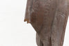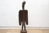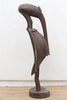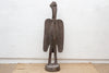 A charming Senufo hornbill sculpture, soaring to an impressive 79 inches in height with a substantial base measuring approximately 22" x 18". This striking piece features an aged grayish-brown finish, a beautiful patina that speaks to its likely vintage or antique origins and hints at a long history and exposure over time. The sculpture depicts the revered "Setien" figure of the Senufo people of the Ivory Coast, embodying ancestral spirits, wisdom, and the cyclical nature of life.