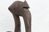 The aged grayish-brown finish, with its subtle variations in tone and texture, enhances the sculpture's sense of antiquity and organic connection to the natural world. The elongated form, characteristic of Senufo hornbills, is accentuated by its impressive height, making it a powerful and captivating presence. This significant carving stands as a testament to the Senufo artistic tradition and their deep reverence for the spirits of their ancestors.