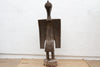 Presenting a truly monumental Senufo hornbill sculpture, soaring to an impressive 83 inches in height with a substantial base measuring approximately 29" x 27". This striking piece features tribal engravings on its belly, beak and upper head, adding a layer of visual complexity and potential symbolic meaning to the revered "Setien" figure of the Senufo people of the Ivory Coast. The hornbill is a significant symbol in Senufo cosmology, often representing ancestral spirits, wisdom, and the cyclical nature of life.
