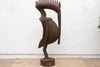 The naturally aged wood finish, with its variations in tone, subtle cracks, and the gentle wear of time, enhances the sculpture's organic beauty and speaks to its likely vintage or antique origins. The elongated form, characteristic of Senufo hornbills, is accentuated by its impressive height, making it a powerful and captivating presence. This significant carving stands as a testament to the Senufo artistic tradition and their deep reverence for the natural world and the spirits of their ancestors.