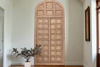 Presenting a truly exceptional piece – a museum-caliber antique Indian door that redefines the concept of a doorway with its grandeur and artistry. Its sheer scale, measuring an impressive 54 inches wide and 116 inches high, establishes an immediate sense of presence. The door's most striking feature is its superb inlay design, a testament to the meticulous skill and artistry of its creators. The elegant dome-top shape on this Indian Antique door adds an architectural sophistication, further enhancing its visual impact. The intricate patterns on this inlay door, featuring geometric and floral motifs common in Indian art, create a captivating visual texture. Inlay work, the art of embedding contrasting materials into wood, has a rich history in India, dating back centuries and signifying wealth, status, and refined taste. This is not merely a functional element but a work of art, capable of transforming any space into a gallery. Imagine the possibilities: as a stunning decorative wall feature, a dramatic room divider, or even a unique and awe-inspiring headboard. The rich history and intricate craftsmanship of this door make it a prized acquisition for discerning collectors and those seeking to infuse their homes with a touch of the extraordinary