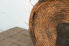 Because of its sheer monumental size (34 inches wide and 26 inches tall), this basket is a true statement piece that can ground an entire room. It makes a phenomenal rustic storage trunk at the foot of a bed (perfect for holding bulky winter blankets), a sculptural side table next to a low-profile sofa, or a commanding focal point in an empty corner. The worn leather and natural woven grasses bring unparalleled texture and a grounded, wabi-sabi aesthetic to any space.