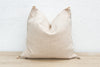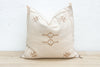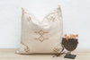 Indulge in the grounded beauty of our handcrafted Moroccan cactus silk pillow, measuring approximately 22 inches square. Woven from the resilient fibers of the Saharan aloe vera cactus, this large cushion features an organic linen-colored background that evokes the natural hues of the desert landscape. Adorning this serene canvas is a striking brown tribal embroidered design, meticulously hand-stitched by Moroccan artisans. The rich brown motifs stand out beautifully against the lighter linen tone, showcasing the intricate details and cultural significance of Berber artistry. This generous 22” square pillow will serve beautifully as a luxurious decorative accent piece to elevate your farmhouse, organic decor. Its substantial size and earthy color palette make it perfect for a grounding statement throw pillow on a sofa / bed: Adding natural warmth and a touch of global texture or a comfortable and stylish floor cushion for relaxed lounging: Providing earthy comfort in a casual setting. This exquisite handmade Moroccan throw pillow is more than just a cushion; it's a piece of Moroccan artistry that brings both comfort and organic style to your home.