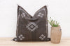 Indulge in the artistry of our handcrafted Moroccan cactus silk pillow, measuring approximately 22 inches square. Woven from the resilient fibers of the Saharan aloe vera cactus, each pillow is a unique testament to centuries-old Berber tradition. The aged charcoal background of the cactus silk provides a rich and sophisticated foundation for the striking contrast of the intricate white tribal embroidery. Meticulously hand-stitched by Moroccan artisans, this one-of-a-kind detailing showcases their exceptional skill and cultural heritage.