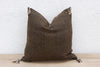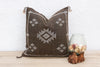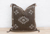 Adorn your space with the captivating artistry of our handcrafted Moroccan cactus silk pillow, approximately 18 inches square. Woven from the durable and subtly textured fibers of the Saharan aloe vera cactus, this brown & white cushion showcases the timeless textile traditions of the Berber people. The aged charcoal background of the silk provides a striking and sophisticated contrast to the significant white tribal embroidery that commands attention at its center. Each meticulously hand-stitched motif is a unique expression of Berber artistry, often carrying symbolic meanings passed down through generations. This bold white design on this throw pillow against the deep charcoal creates a focal point that embodies both ancient tradition and modern aesthetic appeal. This 18-inch square pillow will serve beautifully as: A distinctive accent pillow on a chair/ sofa or bed. Adding a touch of global artistry to intimate seating areas and layered pillow arrangement. This exquisite handmade Moroccan throw pillow is more than just a cushion; it's a piece of Moroccan artistry that brings both comfort and global style to your home.