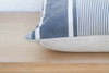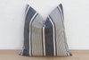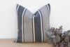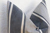This striking decorative pillow is defined by its bold graphic contrast and rich texture. This 20-inch square pillow is crafted from genuine antique European Grain Sack, a heavy, hand-loomed textile that bears the tactile evidence of a centuries-old tradition. The design features a powerful vertical stripe pattern in deep Charcoal Gray and Creamy White, giving the textile a high-contrast, almost architectural aesthetic. The coarse, natural linen background and rich texture give this piece a profound, authentic charm.