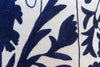 This curated collection of pillows is a striking study in the power of monochrome design and ancestral craft. Each 16-inch square pillow is made from genuine Vintage Suzani textile, a prestigious embroidered cloth originating from Uzbekistan and the historical Silk Road. The design is defined by dense, intricate hand embroidery in deep Navy Blue thread set against a crisp, creamy white ground, creating a powerful, high-contrast effect. The lush, stylized floral and vine motifs—traditional symbols of fertility and abundance—are entirely hand-stitched, transforming the textile into a unique heirloom.