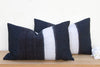 This compelling pair of decorative pillows is a powerful masterpiece of abstract contrast. Each 16 x 24-inch lumbar pillow is crafted from genuine vintage Southeast Asian textile, a luxurious hand-loomed cloth reflecting the ancestral techniques of the Hmong mountain tribes. The design is defined by a dramatic, central white resist-dye panel that cuts through the profound dark indigo, created through a traditional clamp-dye method. This controlled contrast is a beautiful testament to the artisan’s skill, creating a clean, modern aesthetic that belies its age. The subtle, textural character of the hand-loomed fabric adds an authentic layer of history.
