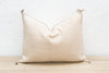 Introduce a touch of earthy elegance with our handcrafted lumbar/rectangular Moroccan cactus silk pillow. Woven from the durable fibers of the Saharan aloe vera cactus, this elongated cushion features an organic linen-colored background that evokes the subtle tones of the desert. A rich brown tribal embroidered design graces its surface, meticulously hand-stitched by skilled Berber artisans. The contrast between the warm linen hue and the deep brown motifs highlights the intricate details and timeless appeal of Berber textile traditions.