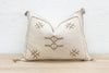 Introduce a touch of earthy elegance with our handcrafted lumbar/rectangular Moroccan cactus silk pillow. Woven from the durable fibers of the Saharan aloe vera cactus, this elongated cushion features an organic linen-colored background that evokes the subtle tones of the desert. A rich brown tribal embroidered design graces its surface, meticulously hand-stitched by skilled Berber artisans. The contrast between the warm linen hue and the deep brown motifs highlights the intricate details and timeless appeal of Berber textile traditions.