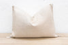 Introduce a touch of refined elegance with our handcrafted lumbar rectangular Moroccan cactus silk pillow. Woven from the durable fibers of the Saharan aloe vera cactus, this elongated cushion features a background in a gentle desert pearl hue, evoking the soft glow of the arid landscape. A crisp white tribal embroidered design graces its surface, meticulously hand-stitched by skilled Berber artisans. The delicate contrast between the light background and the clean white motifs highlights the intricate details and timeless appeal of Berber textile traditions. This Moroccan off white lumbar-shaped pillow will serve beautifully as a supportive and stylish accent on a sofa, settee, or bench, or as a decorative bolster on a bed or reading chair, adding a touch of serene global design. Embrace the rich heritage and subtle color interplay of Moroccan artistry with this exquisite lumbar rectangular cactus silk pillow.