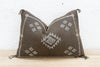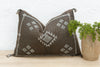 Introduce a touch of timeless Berber artistry to your space with our handcrafted lumbar / rectangular Moroccan cactus silk pillow. Woven from the resilient fibers of the Saharan aloe vera cactus, this elongated cushion features a striking color combination of white tribal embroidery against an aged umber background. This high-contrast aesthetic is deeply rooted in the historical textile traditions of the Berber people, where natural dyes and fibers were used to create both functional and symbolic pieces. The meticulous hand-stitching of the unique white motifs against the dark, textured cactus silk showcases the enduring skill and cultural heritage of Moroccan artisans. This Moroccan lumbar / rectangular pillow will serve beautifully as sophisticated accent on a sofa or bench or a stylish bolster on a bed: Enhancing the visual layering of your bedding and offering comfortable support for reading or lounging. This exquisite handmade Moroccan throw pillow is more than just a cushion; it's a piece of Moroccan artistry that brings both comfort and global style to your home.
