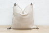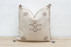 Indulge in the grounded beauty of our handcrafted Moroccan cactus silk pillow, measuring approximately 22 inches square. Woven from the resilient fibers of the Saharan aloe vera cactus, this large cushion features an organic linen-colored background that evokes the natural hues of the desert landscape. Adorning this serene canvas is a striking brown tribal embroidered design, meticulously hand-stitched by Moroccan artisans. The rich brown motifs stand out beautifully against the lighter linen tone, showcasing the intricate details and cultural significance of Berber artistry. This generous 22” square pillow will serve beautifully as a luxurious decorative accent piece to elevate your farmhouse, organic decor. Its substantial size and earthy color palette make it perfect for a grounding statement throw pillow on a sofa / bed: Adding natural warmth and a touch of global texture or a comfortable and stylish floor cushion for relaxed lounging: Providing earthy comfort in a casual setting. This exquisite handmade Moroccan throw pillow is more than just a cushion; it's a piece of Moroccan artistry that brings both comfort and organic style to your home.
