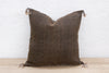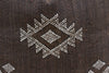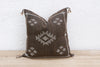 Adorn your space with the captivating artistry of our handcrafted Moroccan cactus silk pillow, approximately 18 inches square. Woven from the durable and subtly textured fibers of the Saharan aloe vera cactus, this brown & white cushion showcases the timeless textile traditions of the Berber people. The aged charcoal background of the silk provides a striking and sophisticated contrast to the significant white tribal embroidery that commands attention at its center. Each meticulously hand-stitched motif is a unique expression of Berber artistry, often carrying symbolic meanings passed down through generations. This bold white design on this throw pillow against the deep charcoal creates a focal point that embodies both ancient tradition and modern aesthetic appeal. This 18-inch square pillow will serve beautifully as: A distinctive accent pillow on a chair/ sofa or bed. Adding a touch of global artistry to intimate seating areas and layered pillow arrangement. This exquisite handmade Moroccan throw pillow is more than just a cushion; it's a piece of Moroccan artistry that brings both comfort and global style to your home.