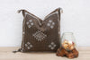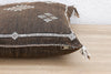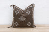 Adorn your space with the captivating artistry of our handcrafted Moroccan cactus silk pillow, approximately 18 inches square. Woven from the durable and subtly textured fibers of the Saharan aloe vera cactus, this brown & white cushion showcases the timeless textile traditions of the Berber people. The aged charcoal background of the silk provides a striking and sophisticated contrast to the significant white tribal embroidery that commands attention at its center. Each meticulously hand-stitched motif is a unique expression of Berber artistry, often carrying symbolic meanings passed down through generations. This bold white design on this throw pillow against the deep charcoal creates a focal point that embodies both ancient tradition and modern aesthetic appeal. This 18-inch square pillow will serve beautifully as: A distinctive accent pillow on a chair/ sofa or bed. Adding a touch of global artistry to intimate seating areas and layered pillow arrangement. This exquisite handmade Moroccan throw pillow is more than just a cushion; it's a piece of Moroccan artistry that brings both comfort and global style to your home.