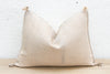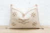 Introduce a touch of earthy elegance with our handcrafted lumbar/rectangular Moroccan cactus silk pillow. Woven from the durable fibers of the Saharan aloe vera cactus, this elongated cushion features an organic linen-colored background that evokes the subtle tones of the desert. A rich brown tribal embroidered design graces its surface, meticulously hand-stitched by skilled Berber artisans. The contrast between the warm linen hue and the deep brown motifs highlights the intricate details and timeless appeal of Berber textile traditions.