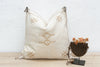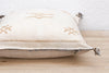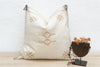 Indulge in the grounded beauty of our handcrafted Moroccan cactus silk pillow, measuring approximately 22 inches square. Woven from the resilient fibers of the Saharan aloe vera cactus, this large cushion features an organic linen-colored background that evokes the natural hues of the desert landscape. Adorning this serene canvas is a striking brown tribal embroidered design, meticulously hand-stitched by Moroccan artisans. The rich brown motifs stand out beautifully against the lighter linen tone, showcasing the intricate details and cultural significance of Berber artistry. This generous 22” square pillow will serve beautifully as a luxurious decorative accent piece to elevate your farmhouse, organic decor. Its substantial size and earthy color palette make it perfect for a grounding statement throw pillow on a sofa / bed: Adding natural warmth and a touch of global texture or a comfortable and stylish floor cushion for relaxed lounging: Providing earthy comfort in a casual setting. This exquisite handmade Moroccan throw pillow is more than just a cushion; it's a piece of Moroccan artistry that brings both comfort and organic style to your home.