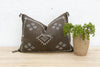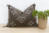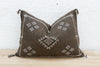 Introduce a touch of timeless Berber artistry to your space with our handcrafted lumbar / rectangular Moroccan cactus silk pillow. Woven from the resilient fibers of the Saharan aloe vera cactus, this elongated cushion features a striking color combination of white tribal embroidery against an aged umber background. This high-contrast aesthetic is deeply rooted in the historical textile traditions of the Berber people, where natural dyes and fibers were used to create both functional and symbolic pieces. The meticulous hand-stitching of the unique white motifs against the dark, textured cactus silk showcases the enduring skill and cultural heritage of Moroccan artisans. This Moroccan lumbar / rectangular pillow will serve beautifully as sophisticated accent on a sofa or bench or a stylish bolster on a bed: Enhancing the visual layering of your bedding and offering comfortable support for reading or lounging. This exquisite handmade Moroccan throw pillow is more than just a cushion; it's a piece of Moroccan artistry that brings both comfort and global style to your home.