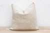Introduce a touch of delicate artistry to your home with our handcrafted 18-inch square cactus silk pillow cover. Woven from the durable and subtly textured fibers of the Saharan aloe vera cactus, this piece showcases the enduring Berber tradition of textile artistry in light tones, reminiscent of sun-bleached hues. The soft, light background provides a gentle and inviting backdrop for the crisp white tribal embroidery that adorns its surface. Each unique motif is meticulously hand-stitched by skilled Moroccan artisans, reflecting their cultural heritage and exceptional craftsmanship in natural colors. This 18-inch square white Moroccan pillow cover is a versatile accent that will serve beautifully as a stylish throw pillow on a chair or as part of a layered pillow arrangement on a sofa or bed, contributing a touch of serene global charm. Please note that this listing is for the pillow cover only.