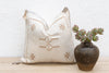 Introduce a touch of organic artistry to your home with our handcrafted 18-inch square cactus silk pillow cover. Woven from the durable and subtly textured fibers of the Saharan aloe vera cactus, this piece showcases the enduring Berber tradition of textile artistry in earthy tones. The organic linen hue of the silk creates a warm and inviting backdrop for the rich brown tribal embroidery that adorns its surface. Each unique motif is meticulously hand-stitched by skilled Moroccan artisans, reflecting their cultural heritage and exceptional craftsmanship in natural colors. This 18-inch square pillow cover is a versatile accent that will serve beautifully as A stylish throw pillow on a chair or part of a layered pillow arrangement on a sofa or bed: Contributing to a rich and textured aesthetic with earthy tones. This exquisite handmade Moroccan throw lumbar pillow is more than just a cushion; it's a piece of Moroccan artistry that brings both comfort and organic style to your home. Offering an easy way to update your decor with a touch of Moroccan flair in natural hues.