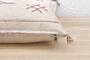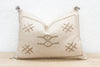 Introduce a touch of earthy elegance with our handcrafted lumbar/rectangular Moroccan cactus silk pillow. Woven from the durable fibers of the Saharan aloe vera cactus, this elongated cushion features an organic linen-colored background that evokes the subtle tones of the desert. A rich brown tribal embroidered design graces its surface, meticulously hand-stitched by skilled Berber artisans. The contrast between the warm linen hue and the deep brown motifs highlights the intricate details and timeless appeal of Berber textile traditions.