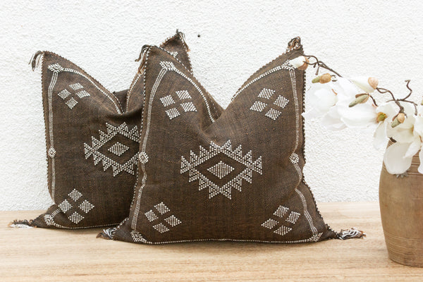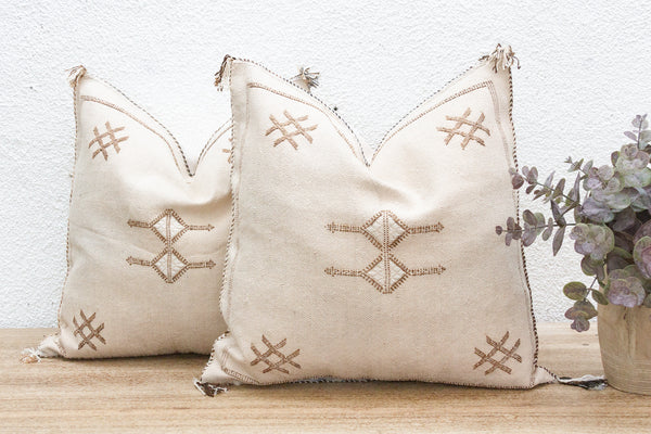 Pair of Large Alabaster Dune Silk Rug Pillows