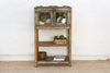 This handsome French Colonial étagère is a genuine antique, a charming fragment of history that effortlessly blends utility with old-world elegance. Dating to the early 20th century, this tall 60-inch high bookcase is defined by its beautiful, aged patina, which features pronounced traces of the original green painted finish. The charming cabinet section at the top is enclosed by double glass doors, perfect for showcasing cherished collections, while the two fixed slatted shelves below provide spacious, open storage. With its straight legs and decorative tray top, this antique wooden bookcase is a versatile piece. It serves as a charming display cabinet for a living room, a unique linen storage solution for a bathroom, or a distinctive kitchen hutch, bringing a touch of authentic rustic and Bohemian Colonial charm to any interior.