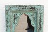 Bring the charm of old-world India into your home with this petite architectural mirror. Modeled after traditional Jharokhas (overhanging enclosed balconies), this piece features a classic Mughal arch silhouette and a deeply weathered, hand-painted finish. The heavy "crackle" texture and distressed patina reveal layers of history, making it a perfect jewel-like accent for a hallway, powder room, or gallery wall.