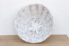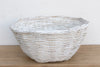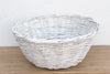 This magnificent 28-inch diameter basket is an authentic piece of French Provincial utility art, likely dating to the mid-20th Century. Baskets of this substantial size were indispensable items in French country homes, primarily used as large laundry hampers (paniers à linge) or harvesting and gathering baskets (paniers de récolte). It is handwoven from sturdy wicker or willow, designed for daily labor and longevity. The natural material has been finished with a delicate whitewash patina, giving it the desirable, chic "shabby chic" and French Country aesthetic that speaks to sun-drenched homes and effortless elegance. Its large volume and wide, shallow profile are signatures of a true gathering piece.