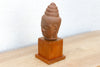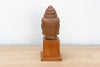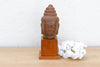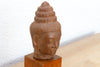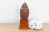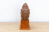 This exquisite Buddha head sculpture is a powerful piece of devotional art, transformed into a contemporary accent piece. The head, with its serene expression, elongated earlobes, and tiered ushnisha (crown), is executed in a style highly evocative of Southeast Asian sculpture. Likely a high-quality, antique-style piece, this sculpture is secured on a custom, dark wood stand that elevates it to the status of a modern art object. Originally part of a larger devotional figure, its fragmented form now brings a concentrated sense of spiritual calm and ancient wisdom. Measuring a perfect 13 inches high, this sculpture serves as a stunning focal point on a console table, a quiet accent for a bookshelf, or an anchor for a meditation space, blending its timeless spiritual message with elegant modern design.