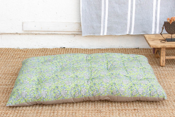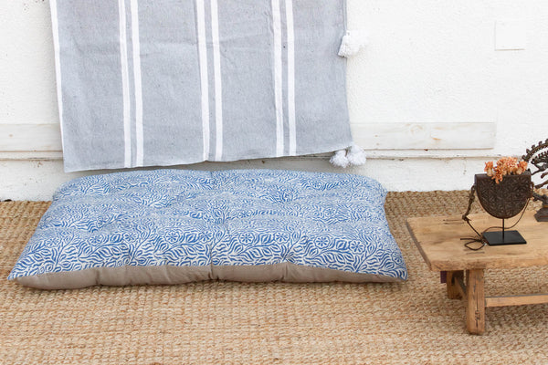 Artisan Block Print Daybeds: Crisp, hand-tufted cotton mattresses featuring graphic geometric and floral prints, perfect for sunrooms and reading nooks.