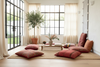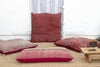 Imagine this large red cushion on a polished concrete floor. It acts as a warm island of texture. You have a low-hanging pendant light above it, creating an inviting spot to sit and read without needing a bulky chair. Stack it with other floor cushions for a "majlis" style seating arrangement in a media room or boho living room. This floor cushion is also the perfect height and size for a dedicated meditation or breath work practice infusion your space with color and texture.