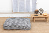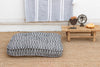 A fusion of traditional craft and modern graphic design, this oversized floor cushion features a striking Black & White geometric pattern. Hand-printed by artisans using carved wooden blocks, the design is a complex lattice of interlocking diamonds and zig-zags that creates a vibrating, dynamic visual effect. The monochromatic palette makes it incredibly versatile, acting as a bold "neutral" that adds pattern without introducing a new color. At 7.5 inches thick with tufted detailing, it offers plush, supportive seating that holds its shape.